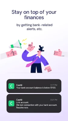- Besides cash advances, we monitor your connected bank account & notify you on your phone when its balance is getting too low.