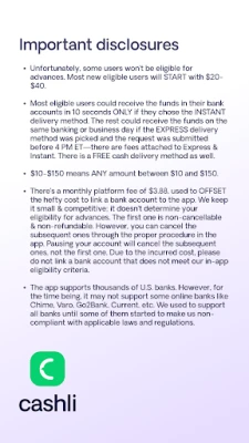 We make no promise that everybody will be eligible for a cash advance. We reward loyalty. Almost no new members will receive the whole $150 right off the bat. But cash advances will grow larger as you & Cashli bond & forge a deep financial friendship together. Eligibility rules apply.
